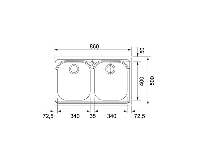 Lunghezza vasca: 2x 340 mm