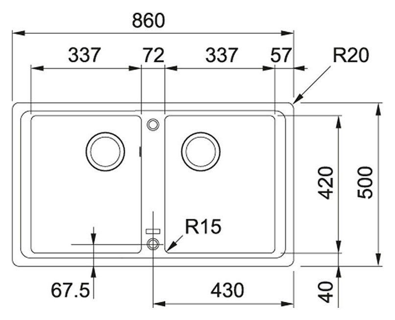 Lunghezza vasca (2x): 337 mm