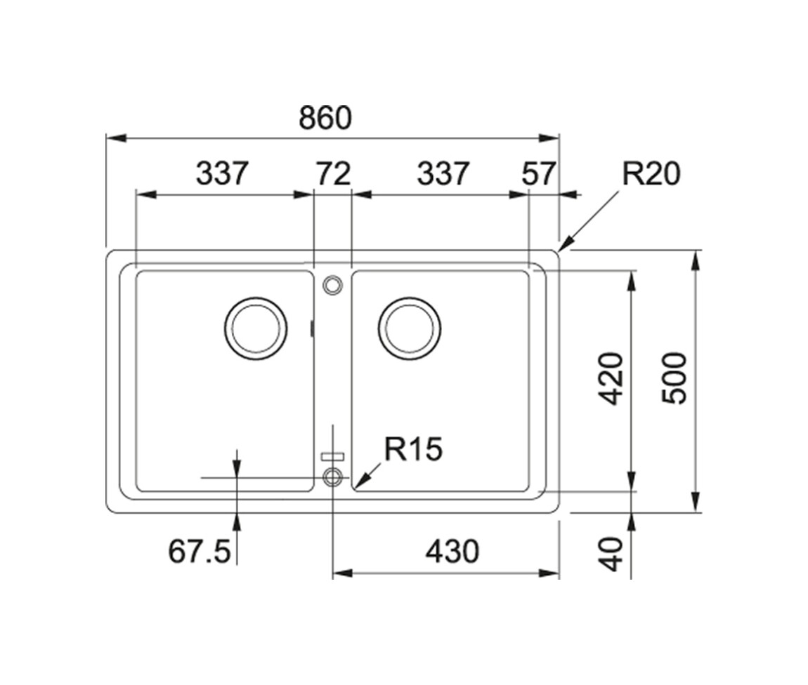 Larghezza vasca: 2x 420 mm
