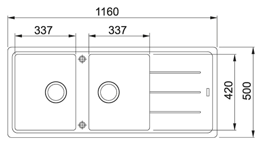 Larghezza vasca (2x): 420 mm