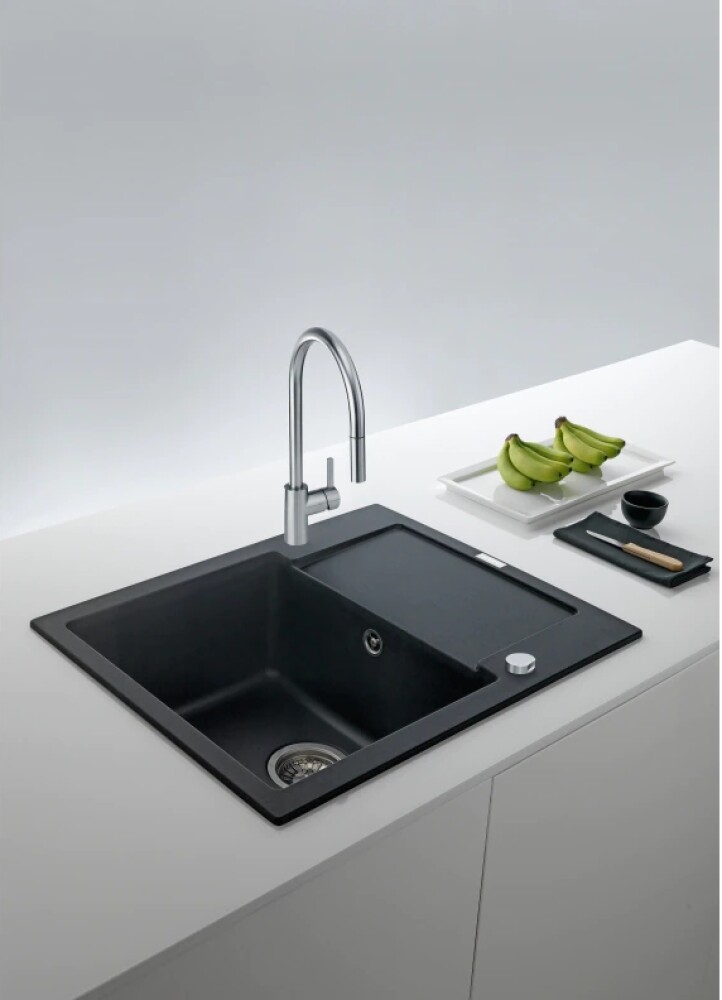 La finitura dei miscelatori acciaio inox è studiata per integrarsi con le vasche Mythos, Franke Box, Box Center, Planar e Maris, creando un connubio perfetto all’interno del design Franke.