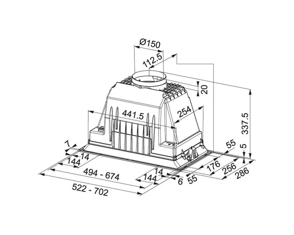 Questa cappa incasso è progettata per offrire una soluzione efficiente per il controllo degli odori e dei vapori in cucina, mantenendo al contempo un aspetto elegante e moderno.