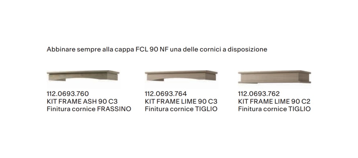 (Abbinare sempre alla cappa FCL 90 NF una delle cornici a disposizione)