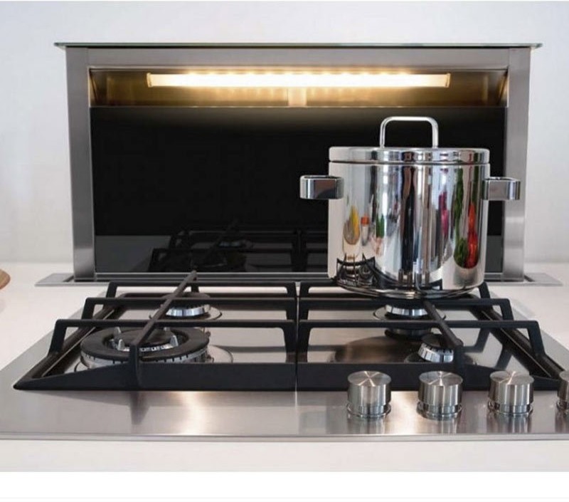 Mostra le tue scelte di design con un elettrodomestico che esalta la tua cucina. Caratterizzata da una tecnologia all’avanguardia, la cappa si ritrae delicatamente sul piano di lavoro con la semplice pressione di un pulsante. Soluzione ideale per le configurazioni a isola: la cappa si nasconde elegantemente nel top della cucina.