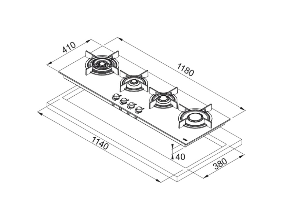 Piano cottura a gas Franke FHCR 1204 3G TC HE BK C – Vetro Nero