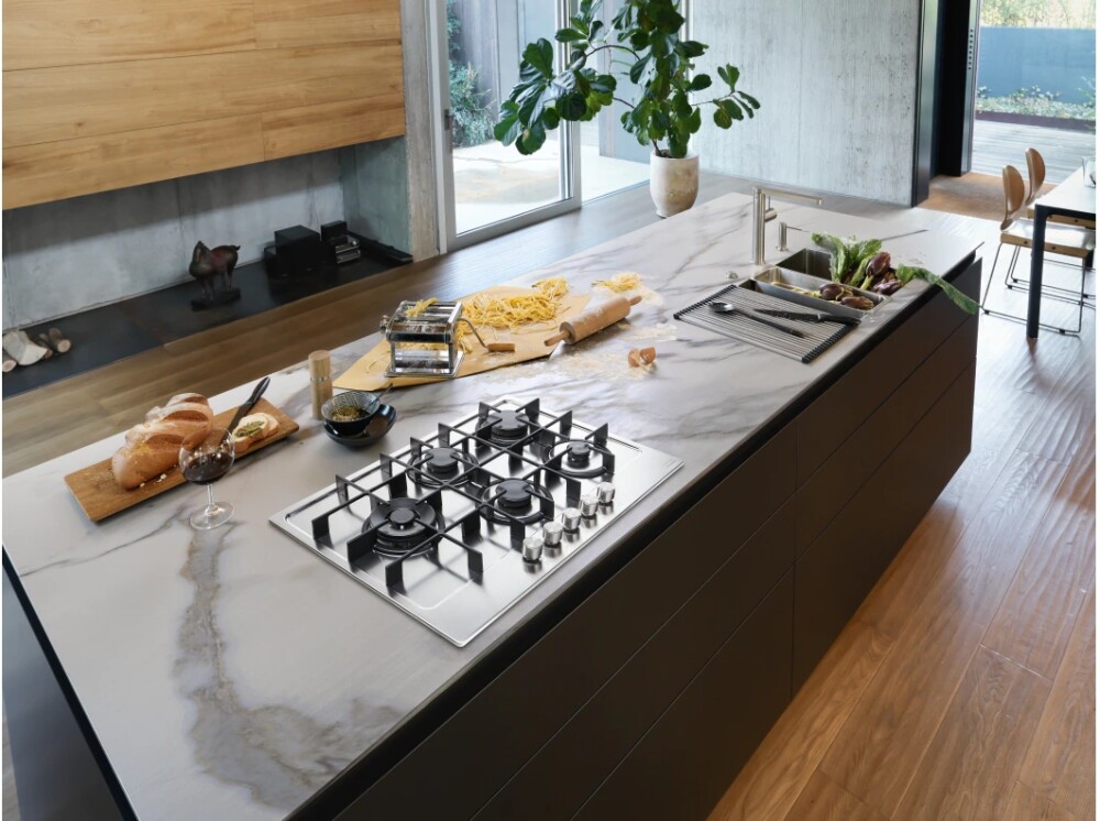 I bruciatori Total Black conferiscono al piano cottura un tocco di eleganza e modernità. La presenza di griglie in ghisa non solo assicura solidità nel tempo ma combina anche estetica e funzionalità.