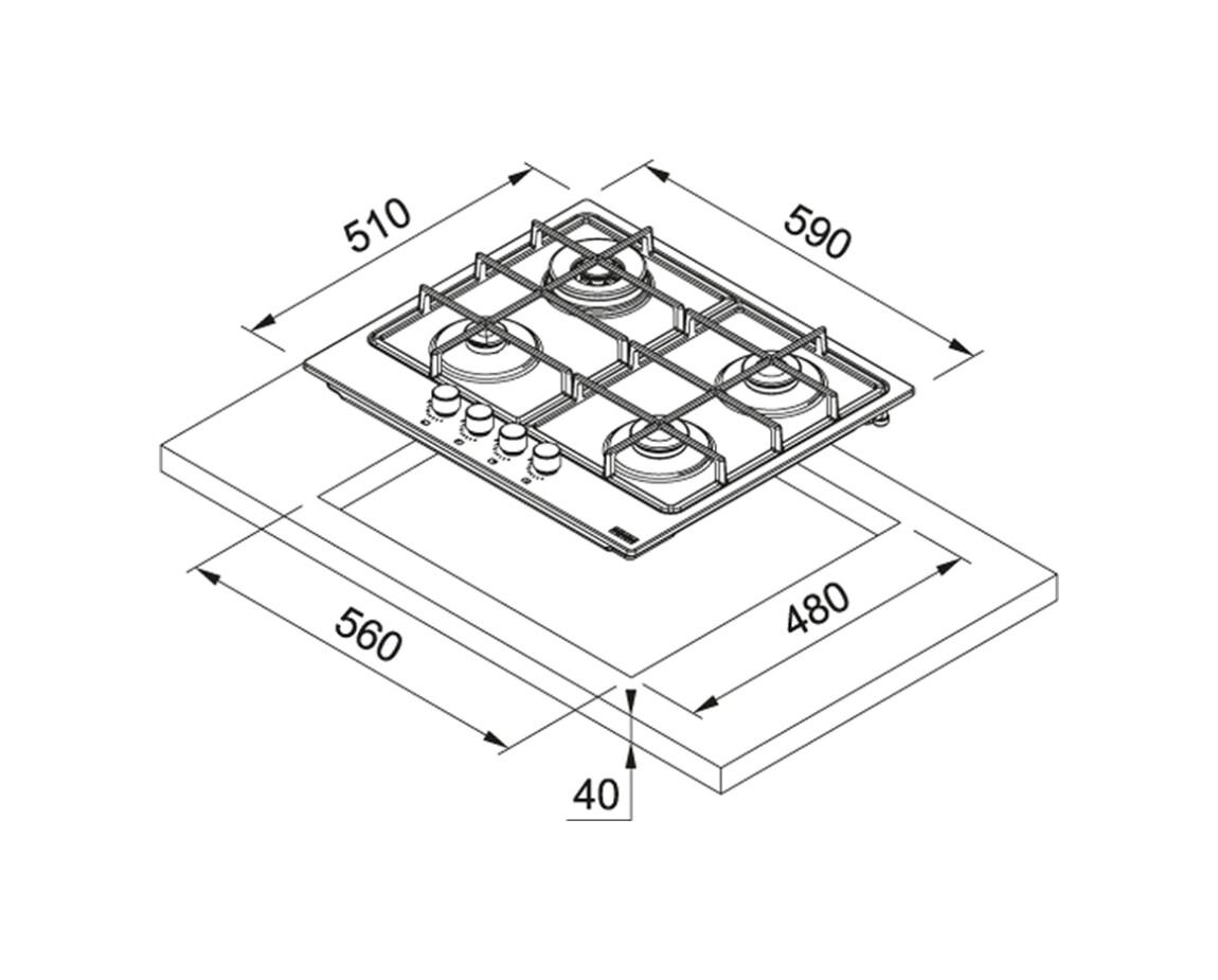 Dimensioni: 590×510 mm. Compatta e efficiente, si adatta perfettamente a cucine di varie dimensioni.