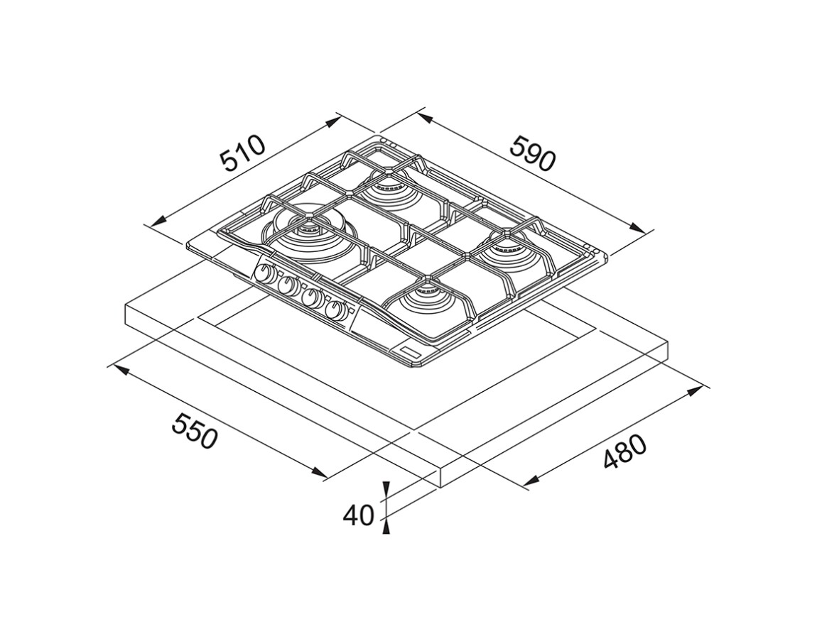 Foro Incasso: 550×480 mm. Facile da integrare nei tuoi mobili da cucina.