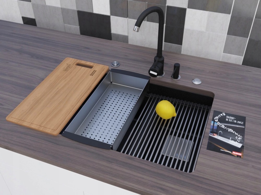 La nuova serie Kubus 2 è dotata di troppo pieno perimetrale, cestello Premium e cover inox copri scarico. Il lavello in fragranite si installa con eleganza anche sottotop per enfatizzare la pulizia funzionale del piano di lavoro.