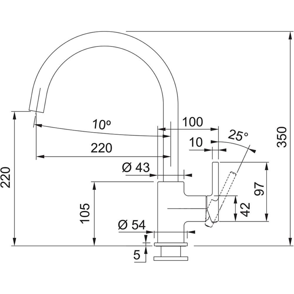 Altezza miscelatore 350 mm