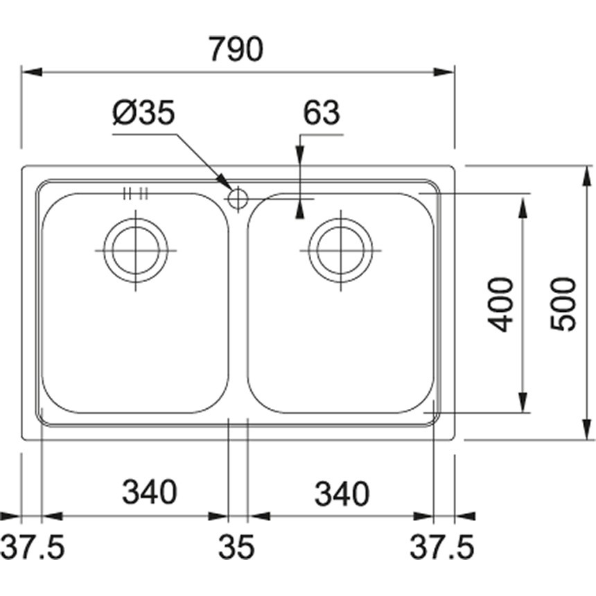 Lunghezza vasca: 2x 340 mm