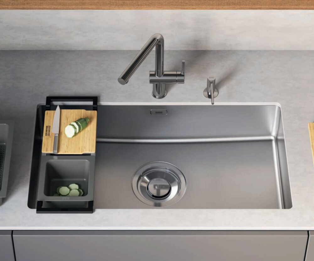 La vasca extra-large Maris Quiet è progettata per offrirti un’esperienza di cucina silenziosa e tranquilla. Dotata del sistema esclusivo Quiet Pad, un doppio rivestimento che riduce il rumore del 20%, assicura una preparazione comoda e pratico. Inoltre, è equipaggiata con uno scarico a cestello facile da pulire che raccoglie lo sporco residuo, prevenendo intasamenti e cattivi odori.