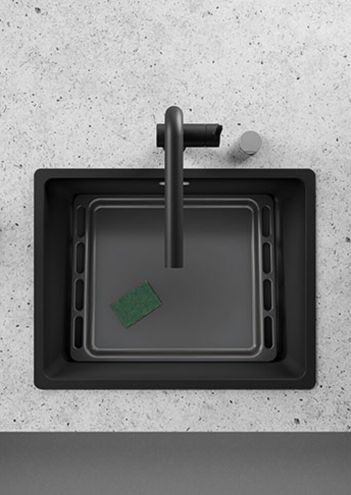 La serie Maris di Franke presenta il lavello MRG 610-52 Sopratop, un’opera d’arte tecnologica che abbraccia l’eleganza del design con prestazioni tecniche di altissimo livello. Il colore Black Matt, una tendenza di stile crescente tra i lavelli Franke, si distingue per il suo carattere sofisticato e formale, integrandosi perfettamente nella tua cucina.