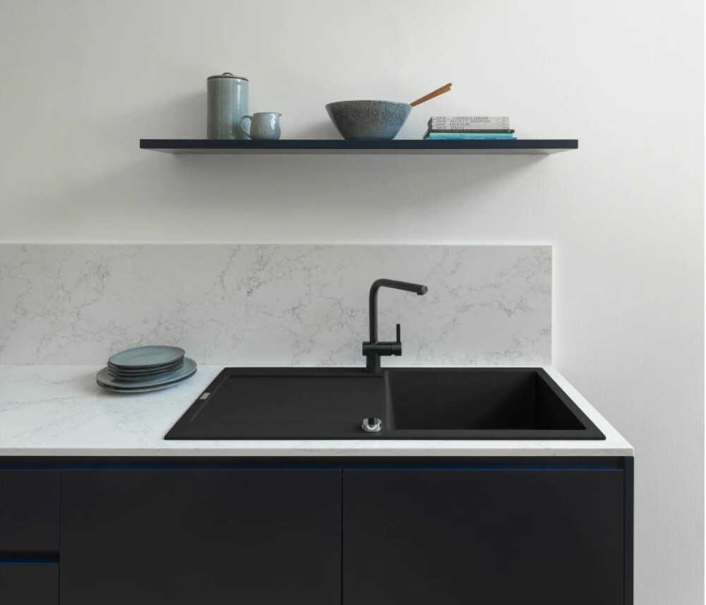 “Lavello Franke Maris MRG 611: una sinfonia di eleganza e funzionalità, incasso 78 x 50 in fragranite nero.
