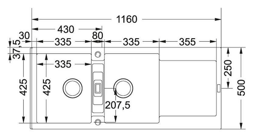 Lunghezza vasca (2x): 335 mm