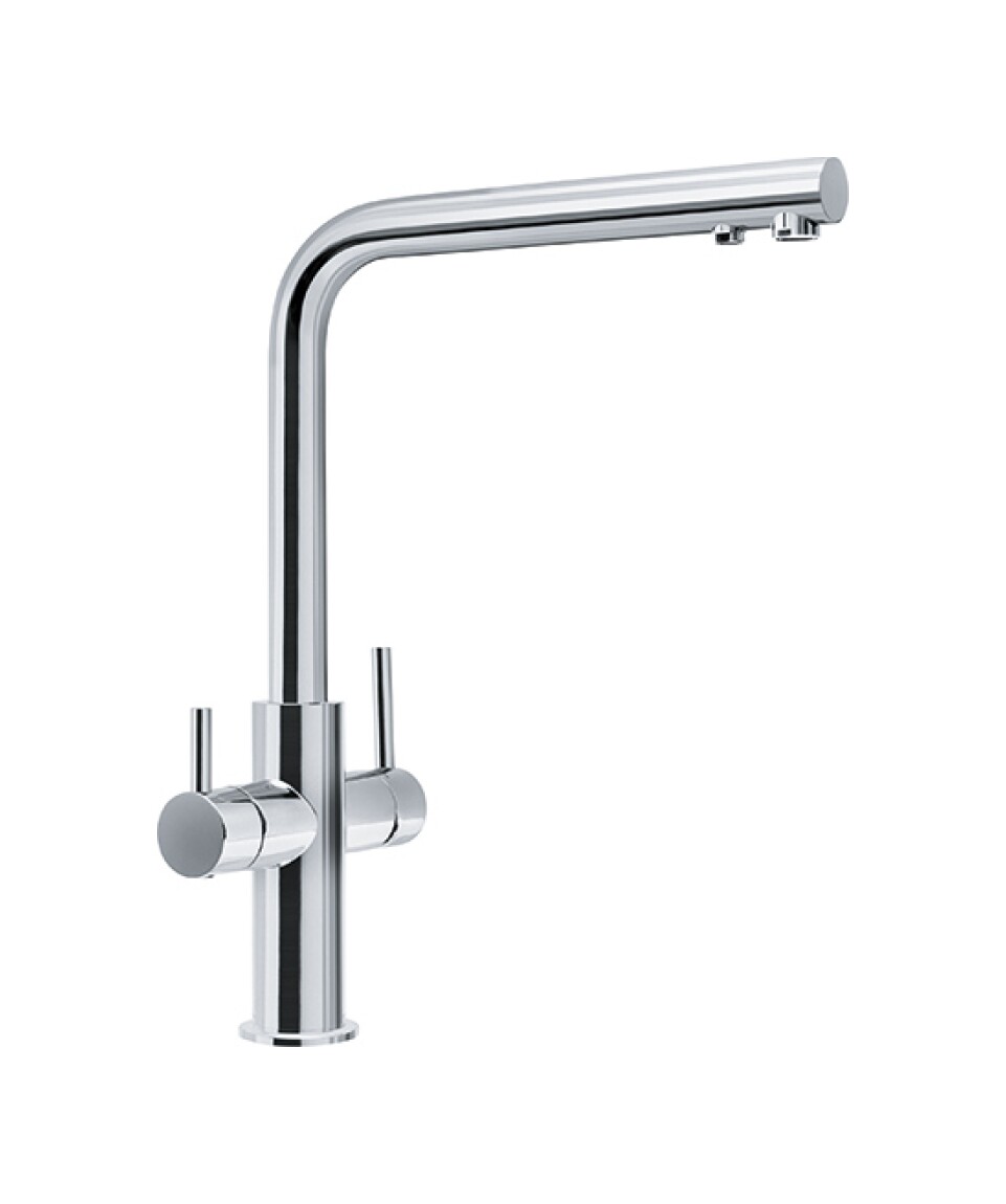 La serie di miscelatori Franke a tripla via offre due comandi destinati all’erogazione di acqua calda e fredda e un terzo per l’acqua filtrata ad uso alimentare. Questa caratteristica offre flessibilità nell’utilizzo dell’acqua in cucina.