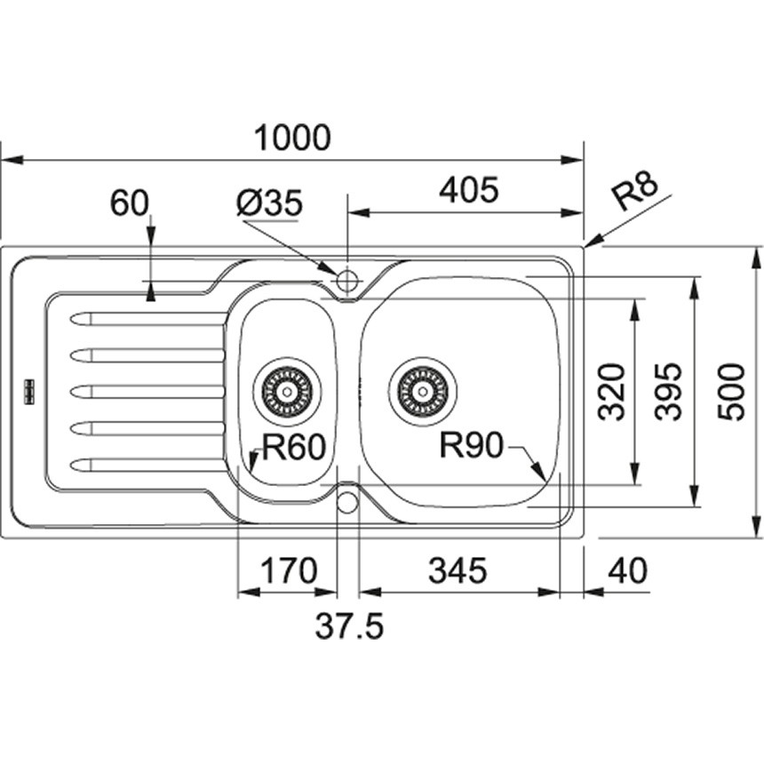 Lunghezza vasca grande: 345 mm