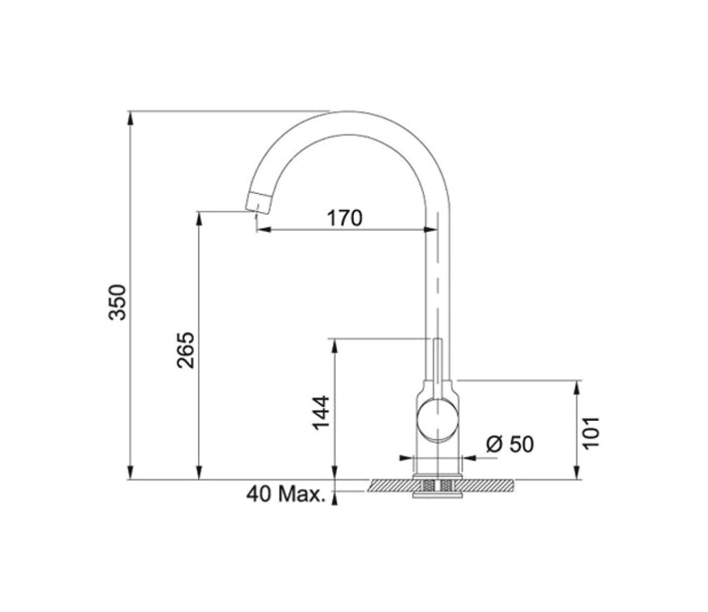 Con un’altezza di 350 mm, il miscelatore fornisce spazio sufficiente per l’utilizzo comodo e agevole.