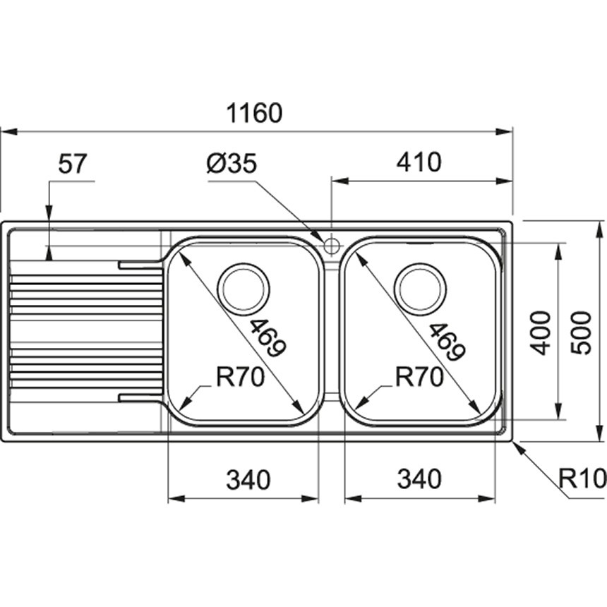 Vasca grande: 340 x 400 x 197.5 mm