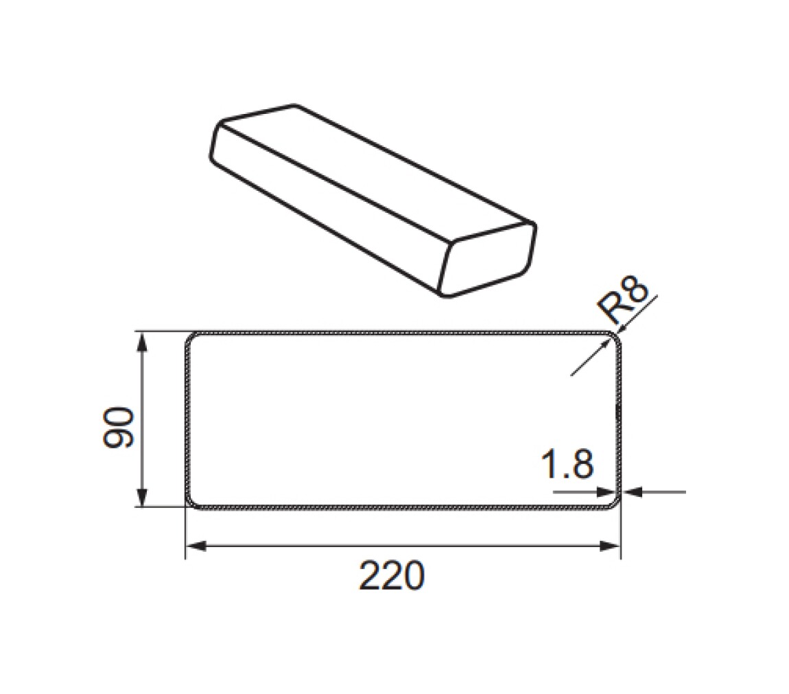 Le dimensioni di 220×90 mm rendono il tubo rettangolare adatto a una varietà di configurazioni di cucina. La sua lunghezza di 1200 mm fornisce flessibilità nell’installazione, consentendo di adattarlo alle specifiche esigenze della tua cucina.