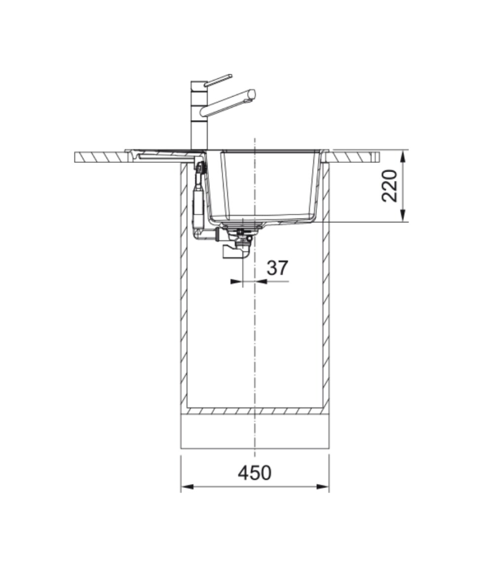 Con una base di 45 e dimensioni totali di 620 x 500 mm, il lavello offre un’esperienza spaziosa e armoniosa. Il foro incasso di 600×480 mm completa l’estetica, mentre la singola vasca con gocciolatoio conferisce un tocco di eleganza e praticità.
