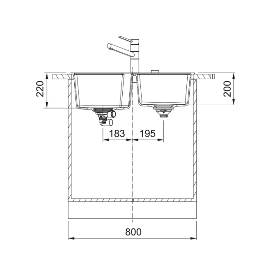 Profondità vasca grande: 220 mm