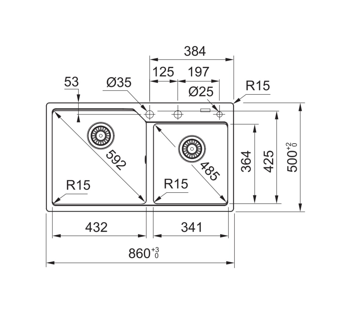 Lunghezza vasca grande: 432 mm