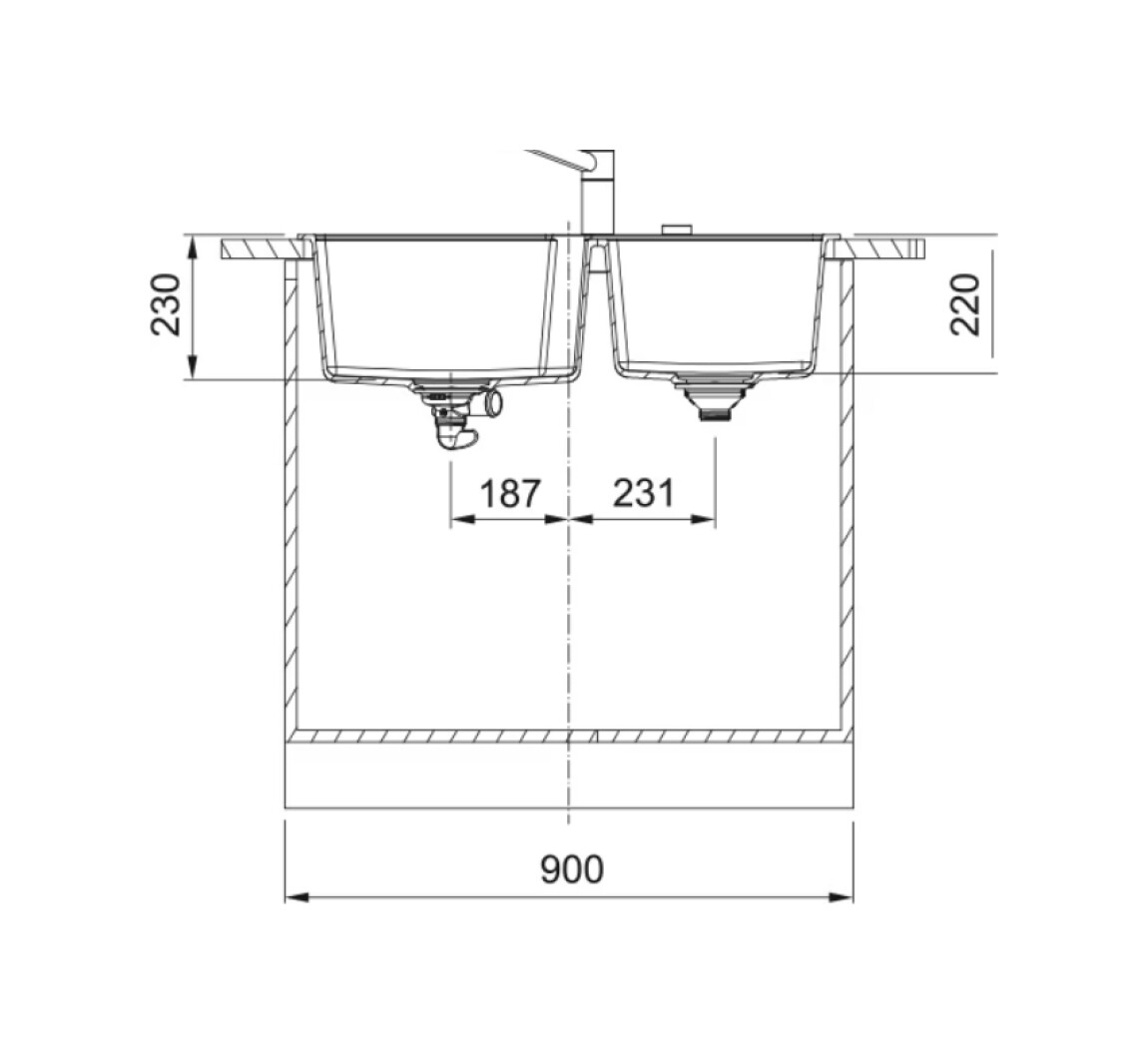 Profondità vasca piccola: 220 mm
