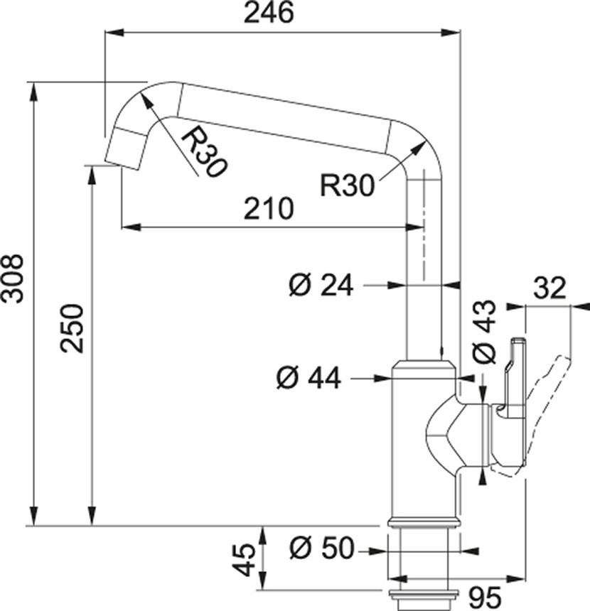 Base diam. 50 mm: La base solida con un diametro di 50 mm assicura stabilità al miscelatore.