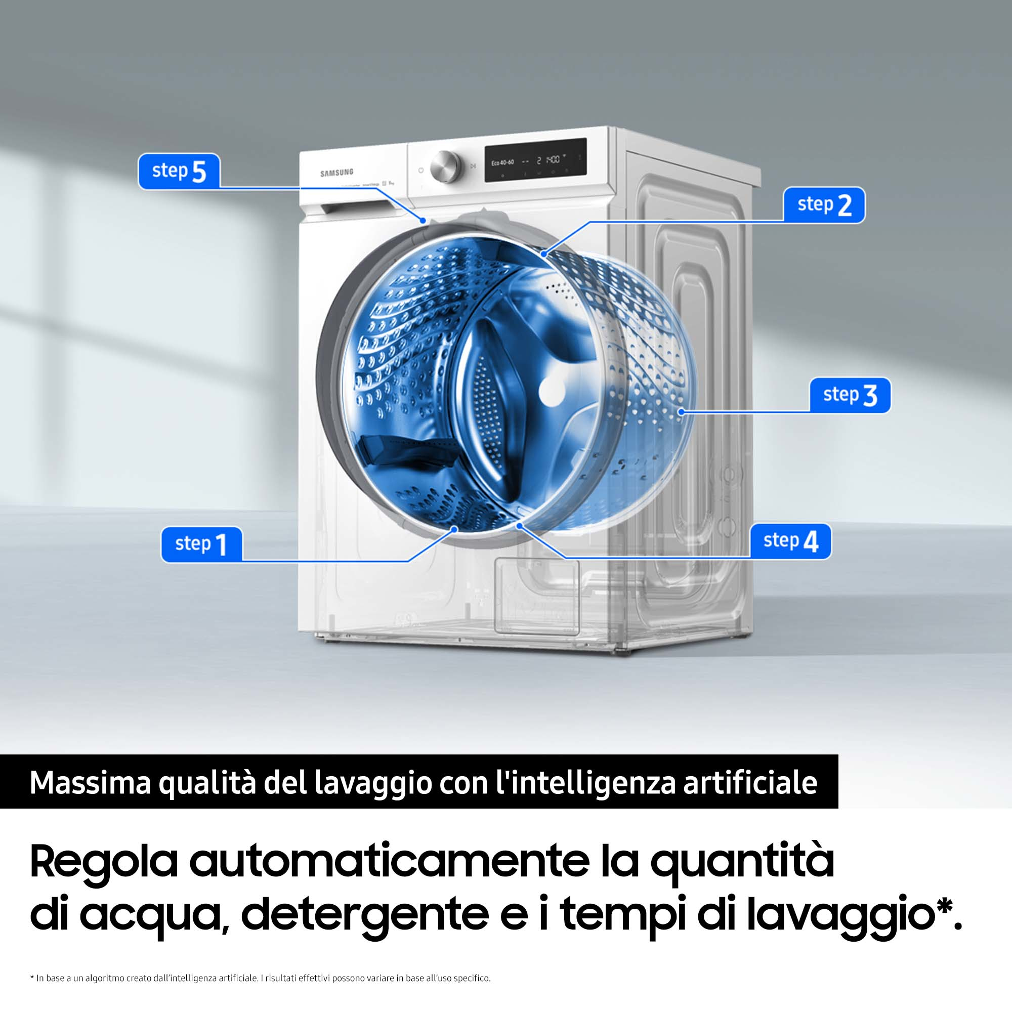 | Programmi di lavaggio | Cura del bambino, Biancheria da letto, Camicia/maglietta, Cotone, Delicati/Seta, Eco, Intenso, Jeans/denim, Prelavaggio, Rapido, Risciacquo e centrifuga, Centrifuga/scarico, Vapore, Sintetico, Asciugamano, Lana |